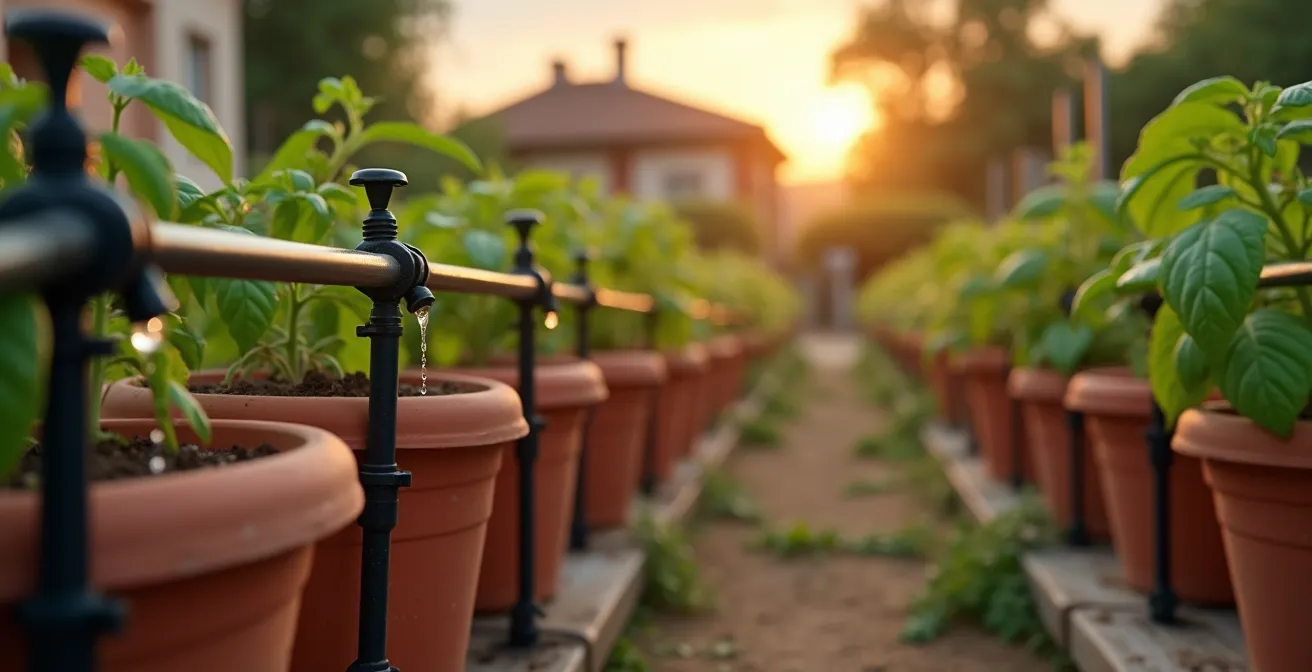 Uno degli errori più comuni nel fai-da-te è applicare una logica “standard” a un sistema che richiede invece personalizzazione. Usare lo stesso tipo di gocciolatore (ad esempio, uno da 2 L/h) per un piccolo vaso di gerani e per una grande fioriera con un limone è la ricetta perfetta per il disastro. Il vaso piccolo riceverà troppa acqua, causando ristagni e marciume radicale, mentre quello grande rimarrà perennemente assetato in profondità. Questo approccio ignora un principio fondamentale: ogni pianta e ogni contenitore costituiscono una “micro-zona” con un fabbisogno idrico unico.